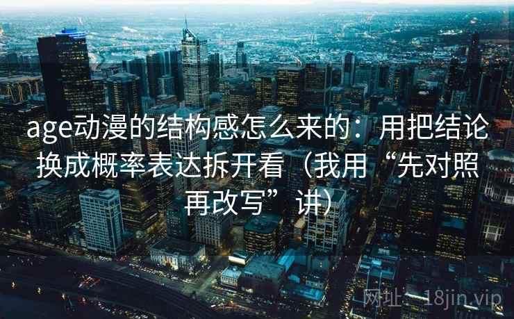 你有没有在欣赏一些精彩的age动漫时,被那种浑然天成的叙事节奏和巧妙的镜头运用深深吸引?那种“啊,就是这个感觉!”的触动,其实并非偶然,而是背后精心设计的结构在起作用。age动漫的结构感究竟从何而来?今天,我们就来一场别开生面的拆解,用一种特别的视角——将结论换成概率表达——来审视它,并辅以我常用的“先对照再改写”方法,让这个神秘的“结构感”变得清晰可见。